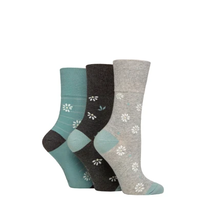 Women's 3 Pair Gentle Grip Cotton Patterned and Striped Socks Daisy Charcoal / Light Grey 4 8