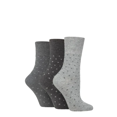 Women's 3 Pair Gentle Grip Cotton Patterned and Striped Socks Digital Dots Charcoal / Grey 4 8 Ladies
