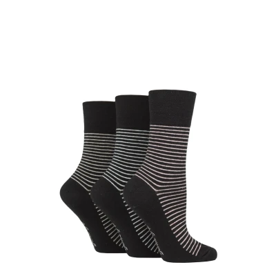 Women's 3 Pair Gentle Grip Cotton Patterned and Striped Socks Fine Stripe Black 4 8 Ladies