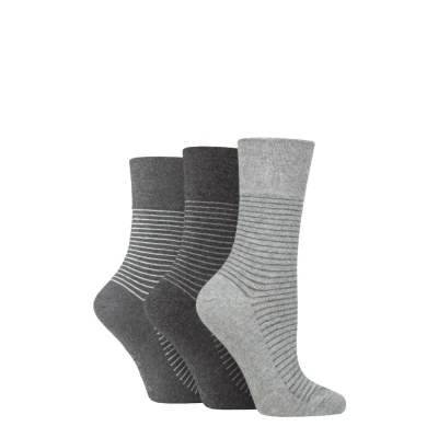 Women's 3 Pair Gentle Grip Cotton Patterned and Striped Socks Fine Stripe Charcoal / Grey 4 8 Ladies
