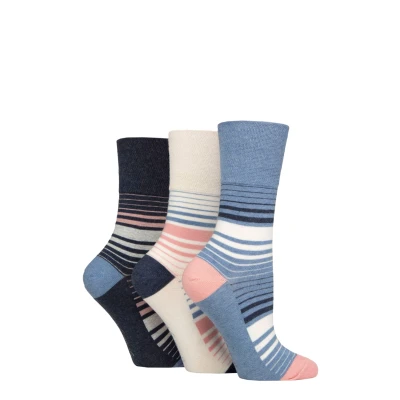 Women's 3 Pair Gentle Grip Cotton Patterned and Striped Socks Gradient Stripe Navy / Denim 4 8