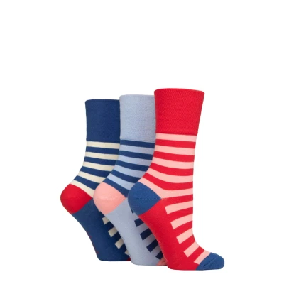 Women's 3 Pair Gentle Grip Cotton Patterned and Striped Socks Joie Red / Blue Lilac 4 8