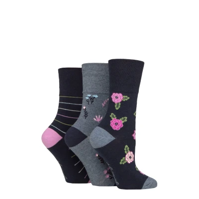 Women's 3 Pair Gentle Grip Cotton Patterned and Striped Socks Opulant Blossom Blue / Navy 4 8