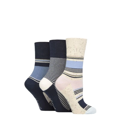 Women's 3 Pair Gentle Grip Cotton Patterned and Striped Socks Summer Sherbet Stripe 4 8