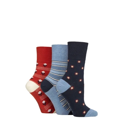 Enhanced comfort for your legs, and with classy looks, each of these triple pack sets of Gentle Grip Patterned and Striped Socks is made in a wonderful, wide range of colours and designs, and overflows with inventive spots, stripes, floral and geometric styles to choose from. Knitted from a light, soft and breathable cotton rich blend, these women's’ Gentle Grip socks are designed with flexible, self-adjusting and non-binding honeycomb weave cuffs at the tops that shape to the natural contours of your legs without tightness or pressure, and without leaving those uncomfortable, unsightly constriction rings behind when you take them off. Enjoy these Gentle Grip even more and for even longer, because they have strengthened toes and heels, making them extra-durable and resilient.