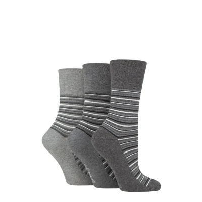 Women's 3 Pair Gentle Grip Cotton Patterned and Striped Socks Varied Stripe Charcoal / Grey 4 8 Ladies