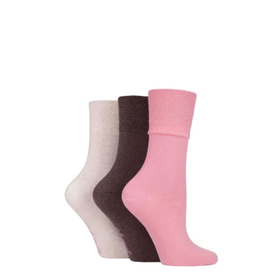 Women's 3 Pair Gentle Grip Plain Cotton Socks Coral / Coffee Sandstone 4 8 Ladies
