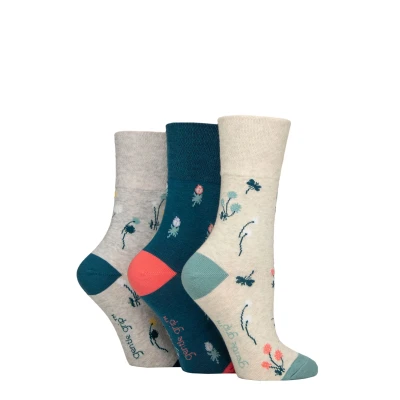 Women's 3 Pair Gentle Grip RHS Royal Horticultural Society Patterned Cotton Socks Floral Contrast 4 8