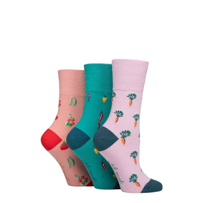 Women's 3 Pair Gentle Grip RHS Royal Horticultural Society Patterned Cotton Socks Vegetables 4 8