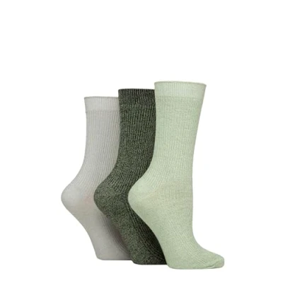Women's 3 Pair Glenmuir Bamboo Leisure Socks Green / Light Grey 4 8