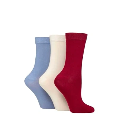 Women's 3 Pair Glenmuir Classic Plain Bamboo Socks Burgundy / Cream Lilac 4 8
