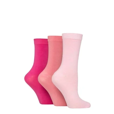 Women's 3 Pair Glenmuir Classic Plain Bamboo Socks Pink 4 8