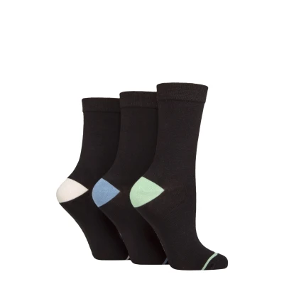 Women's 3 Pair Glenmuir Contrast Heel and Toe Bamboo Socks Black Green / Blue Pink 4 8