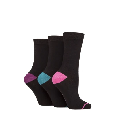 Women's 3 Pair Glenmuir Contrast Heel and Toe Bamboo Socks Black Pink / Teal Purple 4 8