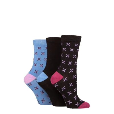 Women's 3 Pair Glenmuir Patterned Bamboo Socks Cross Black 4 8 Ladies