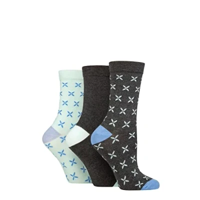 Women's 3 Pair Glenmuir Patterned Bamboo Socks Cross Charcoal 4 8 Ladies