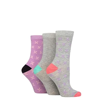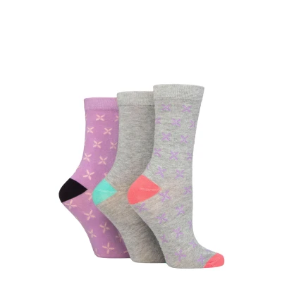 Women's 3 Pair Glenmuir Patterned Bamboo Socks Cross Light Grey 4 8 Ladies