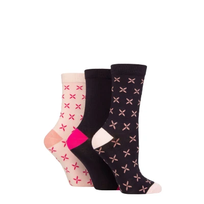 Women's 3 Pair Glenmuir Patterned Bamboo Socks Cross Navy 4 8 Ladies