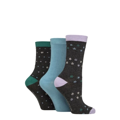 Women's 3 Pair Glenmuir Patterned Bamboo Socks Flower Trail Charcoal 4 8
