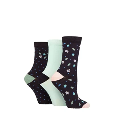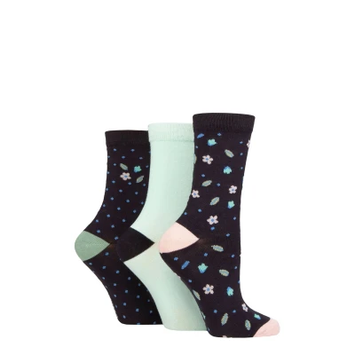 Women's 3 Pair Glenmuir Patterned Bamboo Socks Flowers Navy 4 8 Ladies