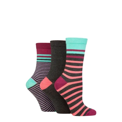 Women's 3 Pair Glenmuir Patterned Bamboo Socks Stripe Charcoal 4 8 Ladies
