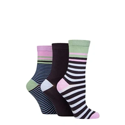 Women's 3 Pair Glenmuir Patterned Bamboo Socks Stripe Navy 4 8 Ladies