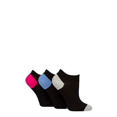 Women's 3 Pair Glenmuir Plain and Patterned Bamboo Secret Socks Black / Grey Blue Pink 4 8