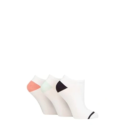 Women's 3 Pair Glenmuir Plain and Patterned Bamboo Secret Socks Stripe Toe White Black / Mint Pink 4 8 Ladies