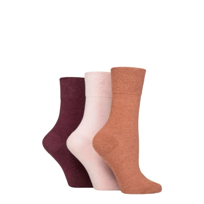 Women's 3 Pair IOMI FootNurse Gentle Grip Diabetic Socks Terracotta / Lavendar Cream Burgundy 4 8