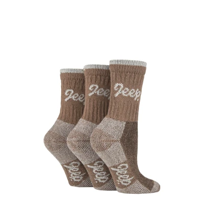 Women's 3 Pair Jeep Luxury Terrain Boot Socks Tan / Cream 4 8 Ladies