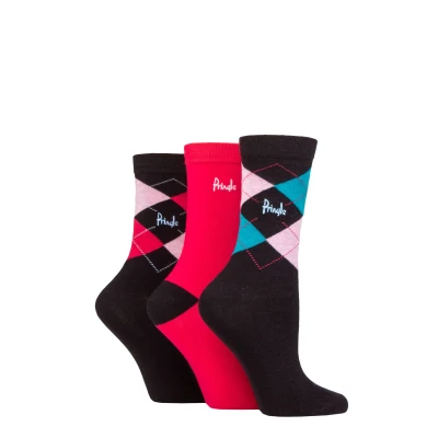 Women's 3 Pair Pringle Louise Argyle Cotton Socks Black Darks 4 8 Ladies