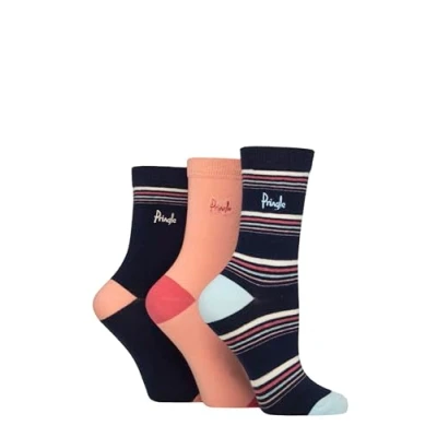 Women's 3 Pair Pringle Patterned Cotton Socks Navy Thin Stripe 4 8