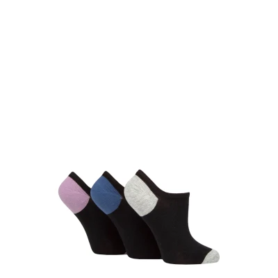 Women's 3 Pair Pringle Plain and Patterned Cotton Trainer Socks Black Grey / Navy Purple Heel & Toe 4 8 Ladies