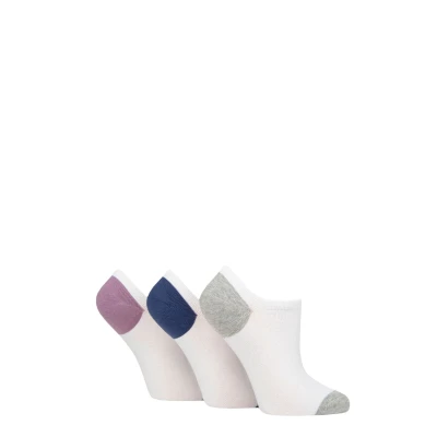 Women's 3 Pair Pringle Plain and Patterned Cotton Trainer Socks White Purple / Blue Grey Heel & Toe 4 8 Ladies