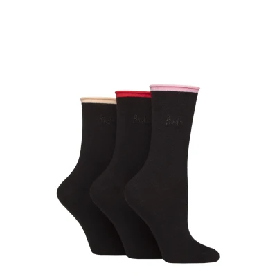 Women's 3 Pair Pringle Rebecca Contrast Roll Top Socks Pink / Red Peach 4 8