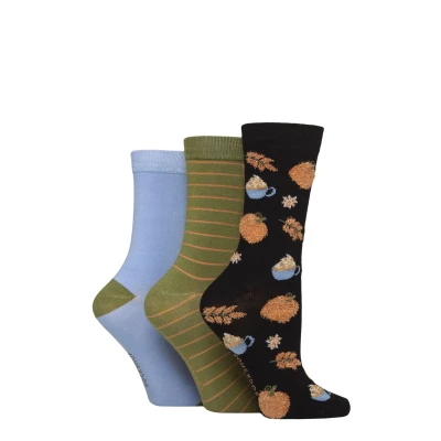 Women's 3 Pair SOCKSHOP Bamboo Feather Socks Pumpkin Spice 4 8