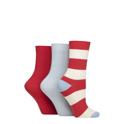 Women's 3 Pair SOCKSHOP Bamboo Ribbed Socks Nautical 4 8