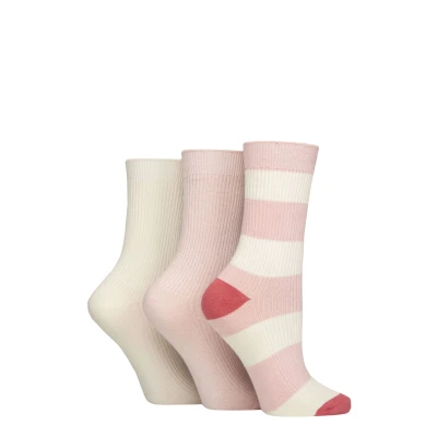 Women's 3 Pair SOCKSHOP Bamboo Ribbed Socks Pink 4 8