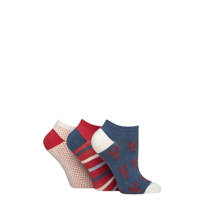 Women's 3 Pair SOCKSHOP Bamboo Trainer Socks with Smooth Toe Seams Nautical Patterned 4 8