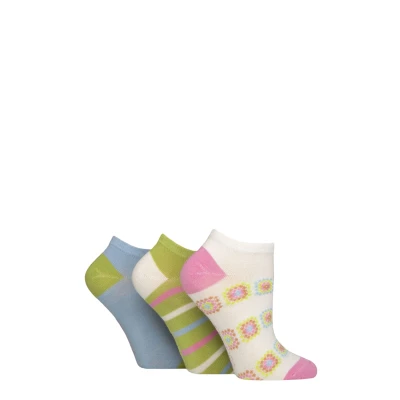 Women's 3 Pair SOCKSHOP Bamboo Trainer Socks with Smooth Toe Seams Ocean View Patterned 4 8