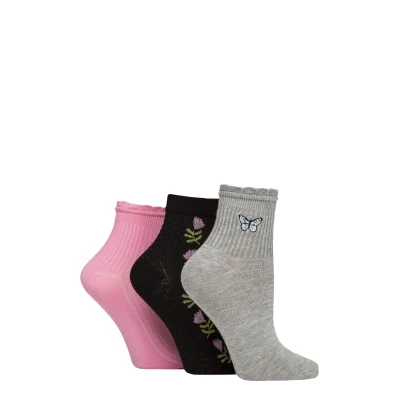 Women's 3 Pair SOCKSHOP Frill Welt Ribbed Bamboo Anklet Socks Butterfly 4 8
