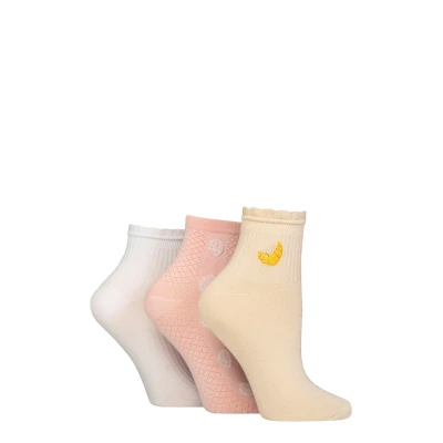 Women's 3 Pair SOCKSHOP Frill Welt Ribbed Bamboo Anklet Socks Croissant 4 8
