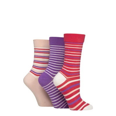 Women's 3 Pair SOCKSHOP Gentle Bamboo Socks with Smooth Toe Seams in Plains and Stripes Tuscan Rose 4 8