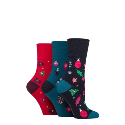 Women's 3 Pair SOCKSHOP Gentle Grip Christmas Socks Navy / Red 4 8