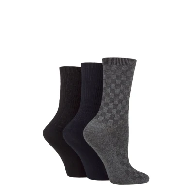 Women's 3 Pair SOCKSHOP Patterned Plain and Striped Bamboo Socks Black / Navy Grey Textured 4 8 Ladies