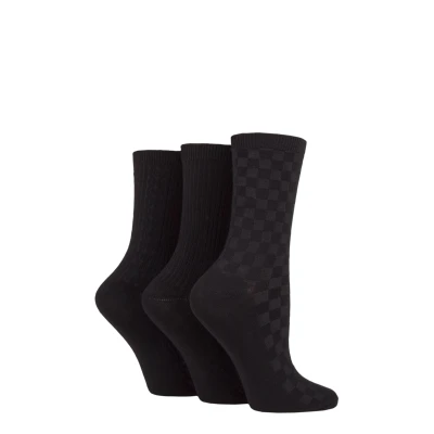 Women's 3 Pair SOCKSHOP Patterned Plain and Striped Bamboo Socks Black Textured 4 8 Ladies