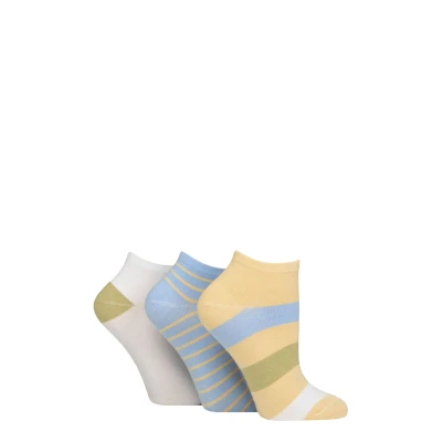 Women's 3 Pair SOCKSHOP Patterned, Striped, Plain, Ribbed and Mesh Bamboo Trainer Socks Sicilian Lemon Striped 4 8