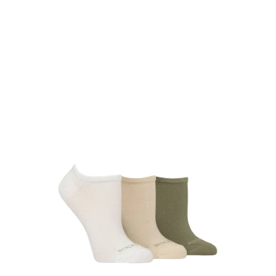 Women's 3 Pair SOCKSHOP Patterned, Striped, Plain, Ribbed and Mesh Bamboo Trainer Socks White / Beige Khaki 4 8