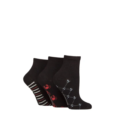 Women's 3 Pair SOCKSHOP Plain and Patterned Bamboo Ankle Socks Sole Black / Nautical 4 8