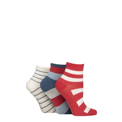 Women's 3 Pair SOCKSHOP Plain and Patterned Bamboo Ankle Socks Striped Nautical 4 8